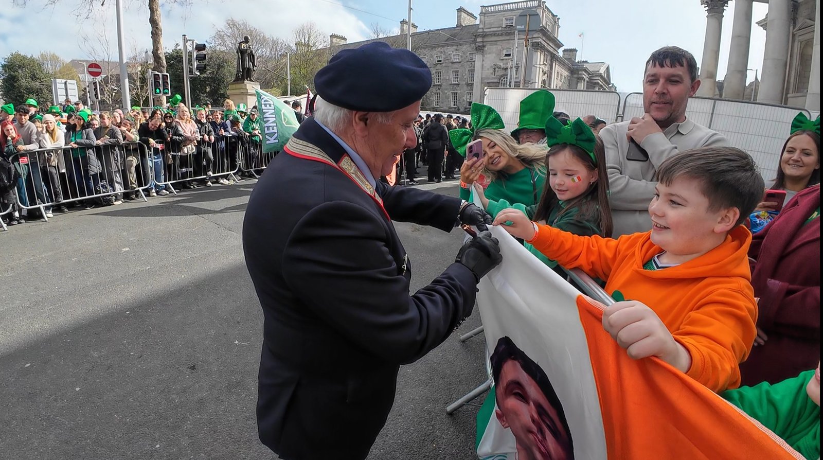 I Carabinieri sfilano lungo le vie della capitale celtica davanti a mezzo milione di persone. Una visibilità straordinaria all’estero per l’Arma, rafforzata anche dalla presenza della Federazione Italiana Dei Combattenti Alleati (FIDCA) sezione EIRE e del II BTG ACA di Fossano, che contribuisce a dare ulteriore prestigio e valore istituzionale al contingente italiano. Un contesto che consacra il ruolo di Francesco Morelli, Presidente della sezione irlandese dell’Associazione Nazionale Carabinieri, autentico ambasciatore di questo corpo in terra irlandese. C’è un momento, lungo il percorso della parata di San Patrizio, in cui la festa sembra fermarsi. Lo sguardo della folla si sposta: non sui carri, non sulla musica, ma su un gruppo di uomini in uniforme. Sono i Carabinieri italiani, e attorno a loro nasce qualcosa di inatteso: applausi, sorrisi, richieste di autografi.