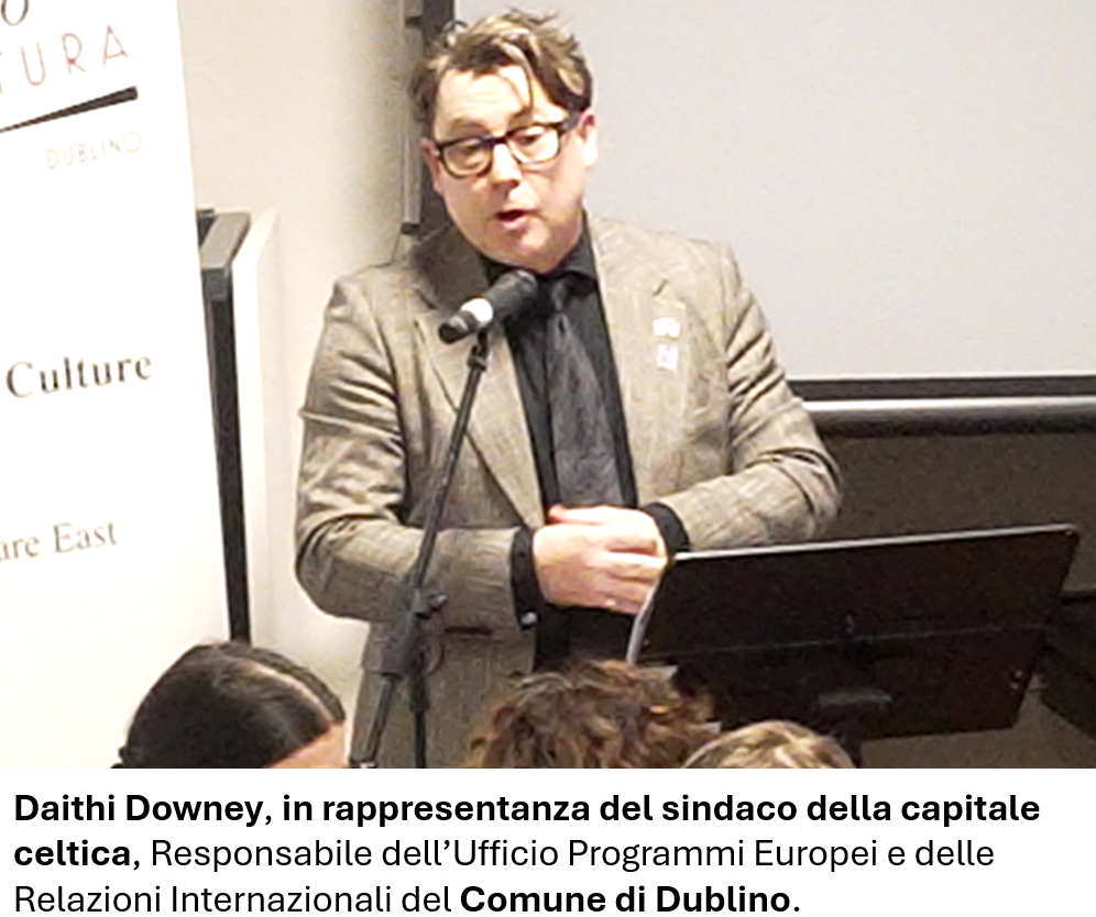 Sul versante irlandese partecipa Daithí Downey, in rappresentanza del sindaco della capitale celtica, responsabile dell’Ufficio Programmi Europei e delle Relazioni Internazionali del Comune di Dublino, mentre il mondo accademico è rappresentato da Lynda Mulvin, professoressa di Storia dell’Arte presso la University College Dublin (UCD). A sottolineare il rilievo dell’incontro sono inoltre il Vice Ambasciatore Edoardo Berionni Berna, Furio Pietribiasi, presidente della Camera di Commercio Italiana di Dublino, e il direttore generale Fabio Pierobon.