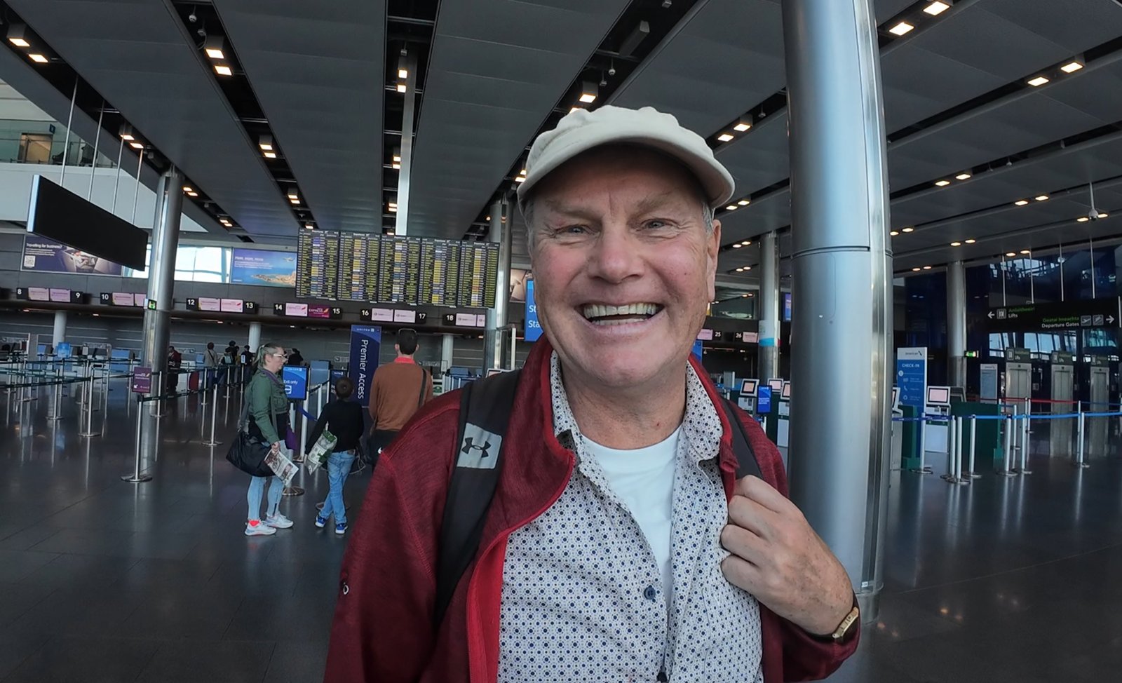 Brian Roche al Terminal 2 dell’aeroporto di Dublino, in partenza per l’Uganda.