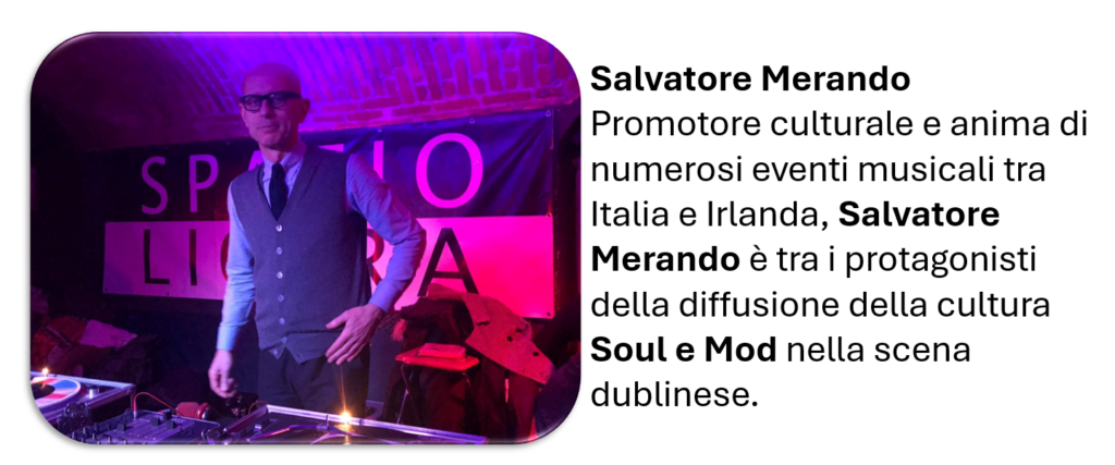 E proprio l’Italia, in questo universo musicale, ha un peso sempre più evidente. A guidare la serata è Salva “The ModRunner”, figura carismatica della scena Mod europea. Il suo nome è ormai legato a diversi progetti musicali che mettono in dialogo Irlanda e Italia, tra cui anche il festival Smart Soul Connection, l’iniziativa ideata da Salvatore Merando che proprio nel 2026 celebra la sua quarta edizione, creando un ponte musicale tra Dublino e Livorno. Un gemellaggio culturale costruito attorno alla passione per il soul, il Mod e la cultura del vinile.